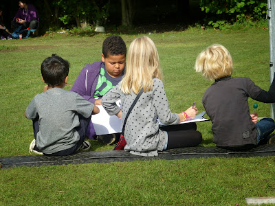 However.. by three, the craft tent is a madness of parents and kids. Our little stall is set up to encourage youngsters to pick up pen and paper (supplied) and go out and draw a list of subjects.